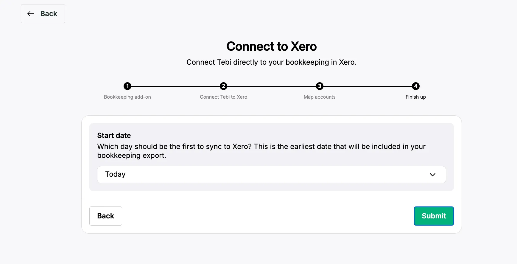 3. Select the first date to sync to Xero. This is the earliest date that will be included in your bookkeeping export.
