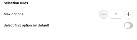 - Set the selection rule: define how many products can be chosen from this slot (for example Choose 1 or Choose 2).